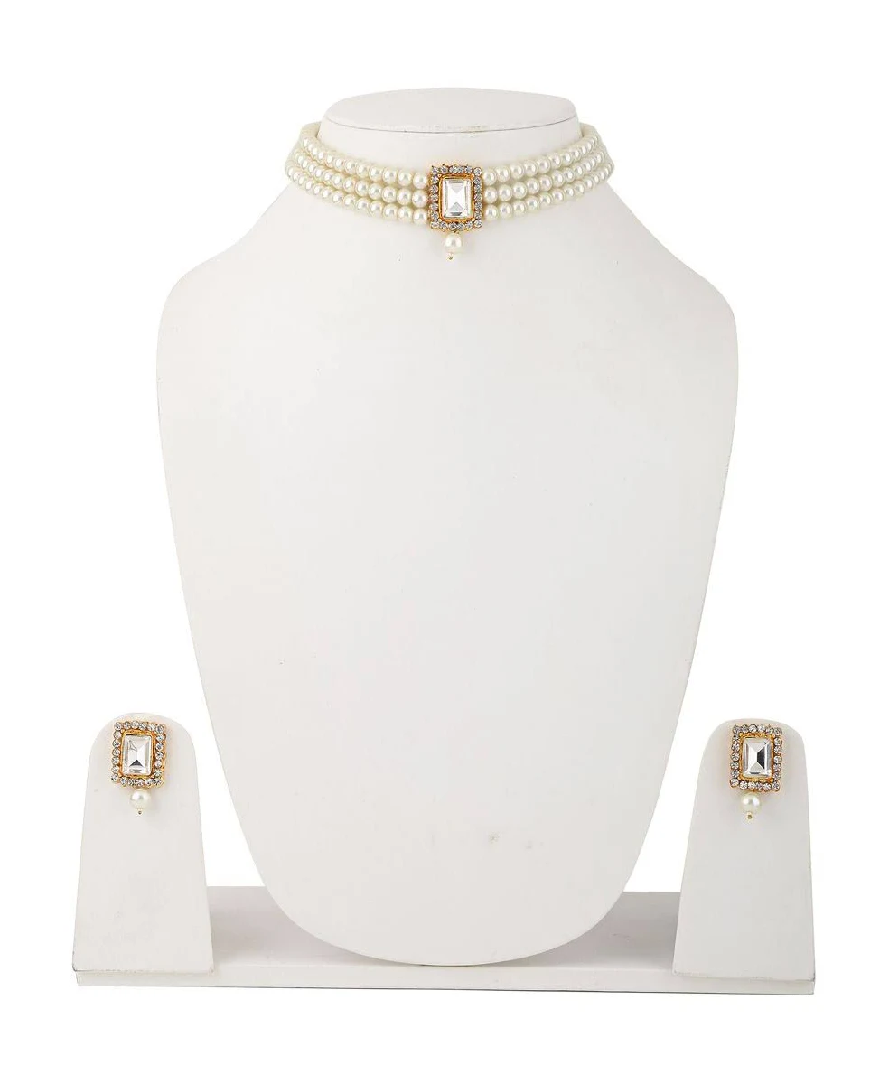 Shining Diva Women's Beaded & Kundan Studded Choker Jewellery Set